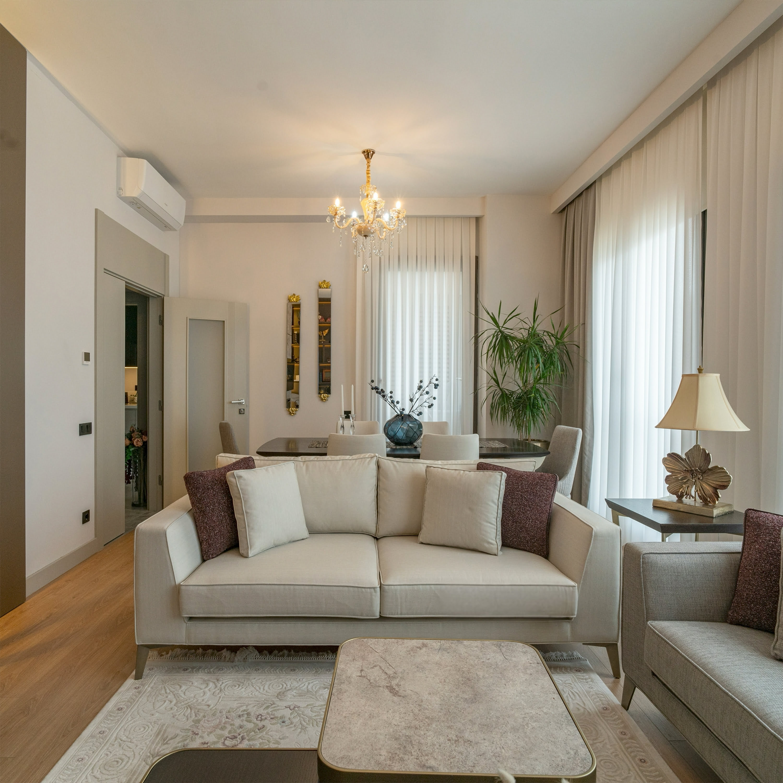 Bu projede mekânın ölçüleri, doğal ışık kullanımı ve kullanıcı alışkanlıkları detaylı şekilde analiz edilerek prestijli ve zamansız bir atmosfer oluşturuldu. Mimari hizmet sürecimiz kapsamında oturma alanı, yemek bölümü ve duvar üniteleri bir bütün olarak planlandı.
